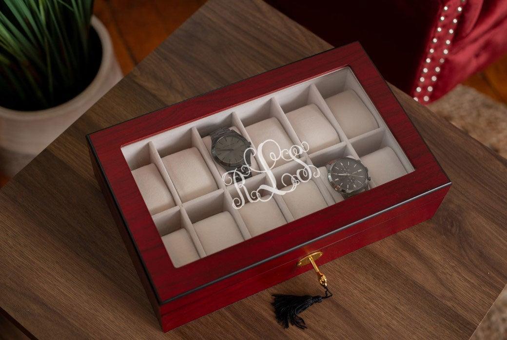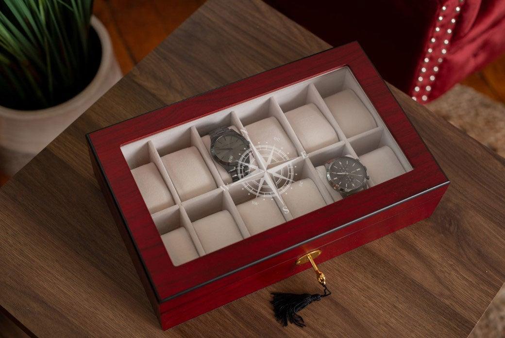 Take great care of your collection of watches! PUT YOUR MIND AT EASE WITH THIS WATCH BOX. Feel comfortable displaying your watches in this cherry wood watch box with felt padding! Never deal with the worry of scratching or losing your watches again!
