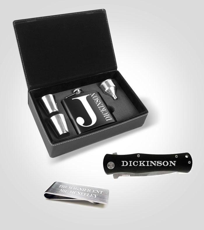 This "Groomsmen Bundle" is the perfect everything gift for your favorite guys. Customize the flask for partying before the wedding, and gift them a custom knife and money clip to keep it classy at the wedding!