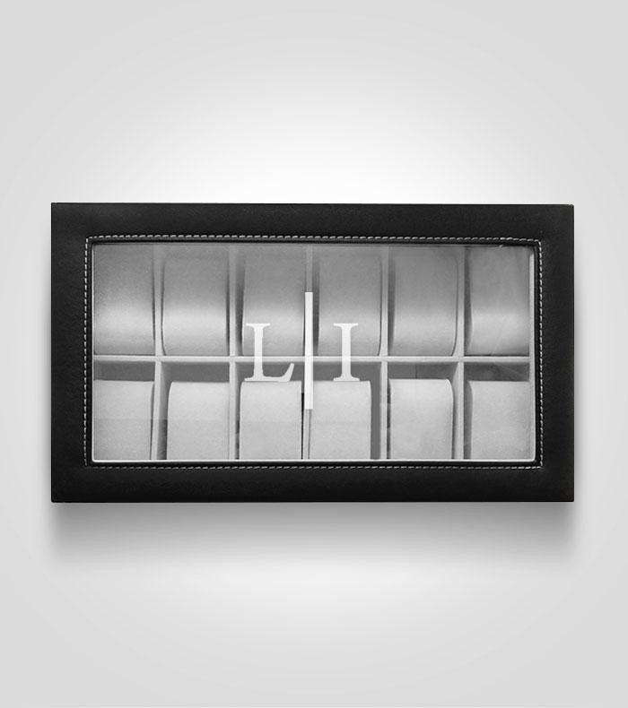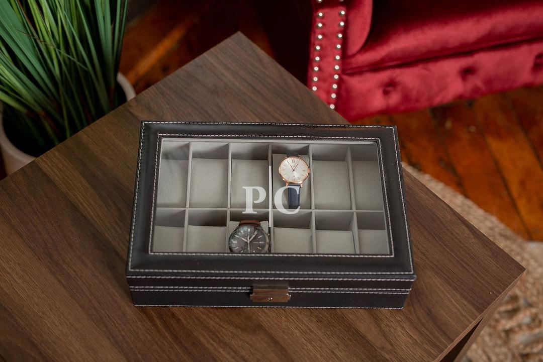 "Turned Out Perfect! My Dad Loved It!" -Jessica T. 12pc Personalized Watch Storage Box for Men with Monogram | Leather, Style 1